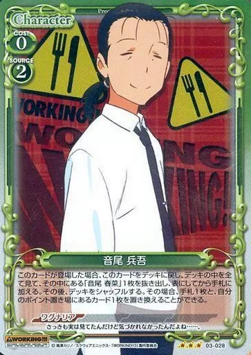Nombre comercial en japonés: プレシャスメモリーズ/R/キャラクター/緑/WORKING!!! ブースターパック 03-028[R]:(ホロ)音尾 兵吾