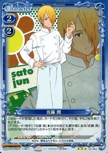 Nombre comercial en japonés: プレシャスメモリーズ/R/キャラクター/青/WORKING!!! ブースターパック 03-063[R]:(ホロ)佐藤 潤