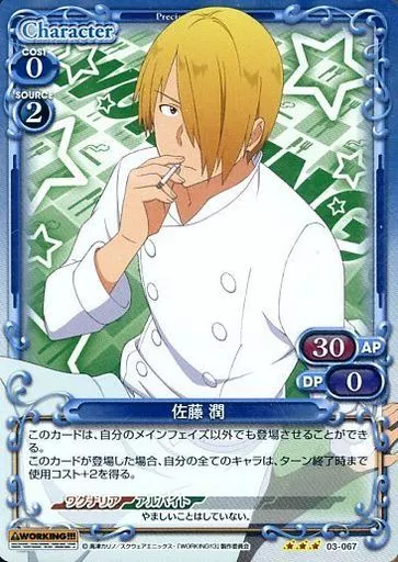 Nombre comercial en japonés: プレシャスメモリーズ/R/キャラクター/青/WORKING!!! ブースターパック 03-067[R]:(ホロ)佐藤 潤