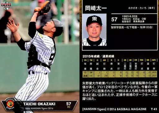 Nombre comercial en japonés: BBM/レギュラーカード/阪神タイガース/BBM2016 阪神タイガース T41[レギュラーカード]:岡崎太一