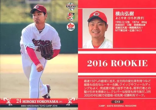 Nombre comercial en japonés: BBM/レギュラーカード/BBM2016 広島東洋カープ C13[レギュラーカード]:横山弘樹