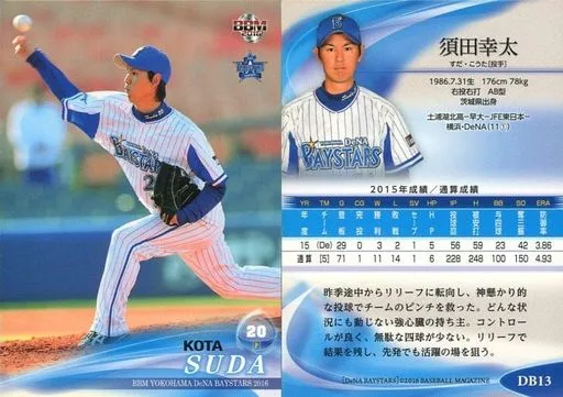Nombre comercial en japonés: BBM/レギュラーカード/BBM2016 横浜DeNAベイスターズ 13[レギュラーカード]:須田幸太