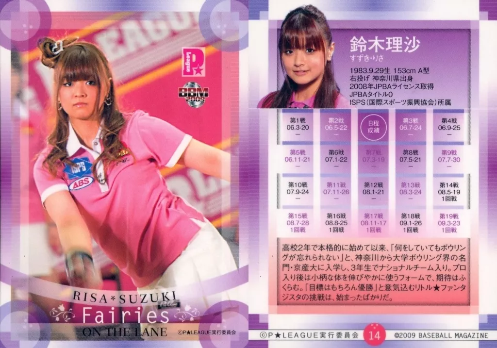 Nombre comercial en japonés: BBM/レギュラーカード/BBM 2009 P★LEAGUE カードセット Fairies on the Lane~レーンの妖精たち~ 14[レギュラーカード]:鈴木理沙