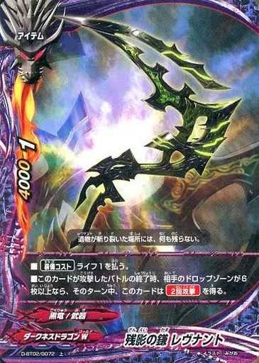 Nombre comercial en japonés: バディファイト/上/アイテム/ダークネスドラゴンW/[BF-D-BT02]トリプルディー ブースターパック第2弾「轟け!無敵竜!!」 D-BT02/0072[上]:残影の鎌 レヴナント