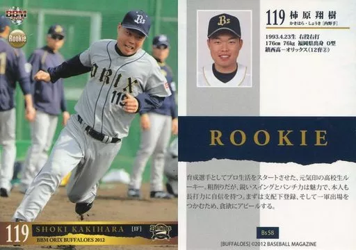 Nombre comercial en japonés: BBM/レギュラーカード/オリックス・バファローズ/BBM2012 オリックス・バファローズ Bs58[レギュラーカード]:柿原翔樹