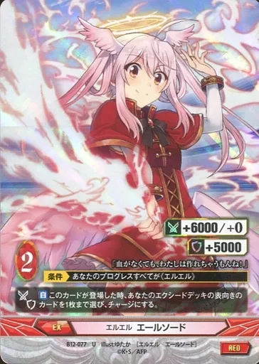 Nombre comercial en japonés: アンジュ・ヴィエルジュ/U/赤/EX/-/ブースターパック「たった一つの願い」 B12-077[U]:(パラレル)エルエル エールソード
