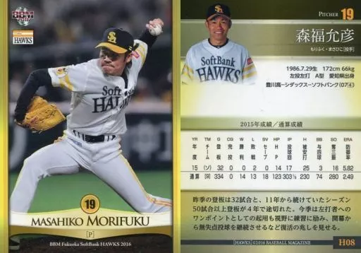 Nombre comercial en japonés: BBM/レギュラーカード/BBM2016 福岡ソフトバンクホークス 08[レギュラーカード]:森福允彦