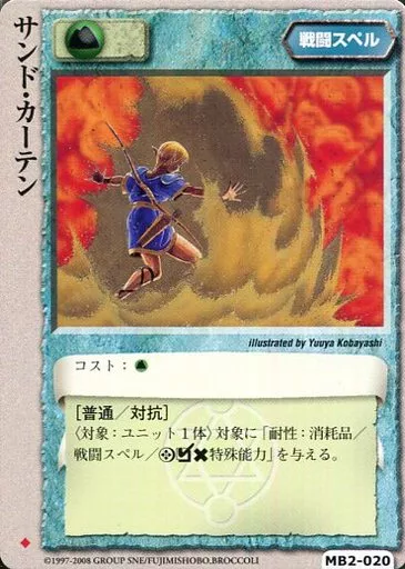Nombre comercial en japonés: モンスターコレクション/並/戦闘スペル/樹海霊の歌姫 MB2-020[並]:サンド・カーテン