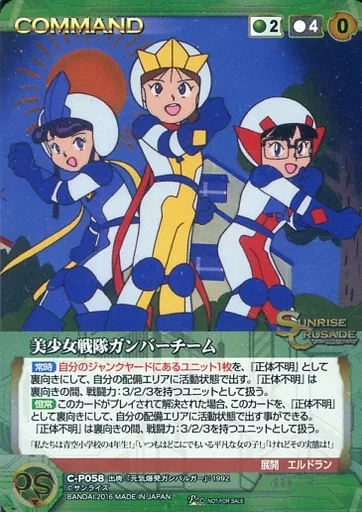 Nombre comercial en japonés: クルセイド/P/COMMAND/緑/クルセイド ポイント交換所 交換カード C-P058[P]:美少女戦隊ガンバーチーム(メタル仕様)