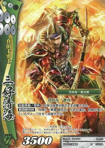 Nombre comercial en japonés: 戦国大戦TCG/R/武将/翠/第三弾ブースターパック 3-092[R]:三好清海