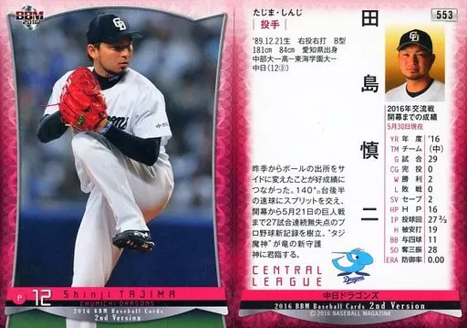 BBM / Regular card / Chunichi Dragons / BBM2016 Baseball Card 2 nd version 553 [tarjeta regular] : Shinji Tajima