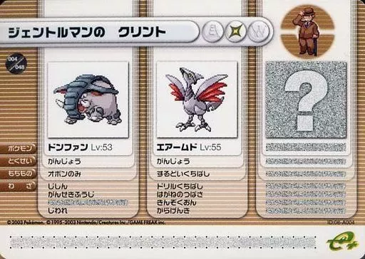 Nombre comercial en japonés: アニメ系トレカ/ポケモンバトルカードe+ルビー&サファイア第1弾 08-A004:ジェントルマンのクリント