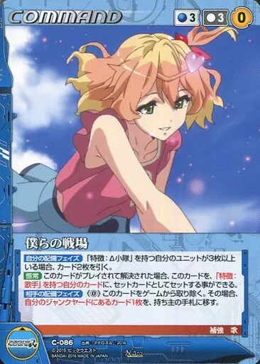 Nombre comercial en japonés: クルセイド/N/COMMAND/青/マクロスクルセイド Δ2弾 飛翔する女神 C-086[N]:僕らの戦場