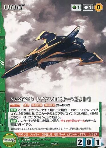 Nombre comercial en japonés: クルセイド/N/UNIT/緑/マクロスクルセイド Δ2弾 飛翔する女神 U-146[N]:Sv-262Hs ドラケンIII(キース機)[F]