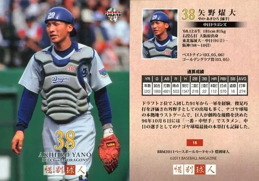 Nombre comercial en japonés: BBM/レギュラーカード/中日ドラゴンズ/BBM2011 惜別球人 16[レギュラーカード]:矢野耀大