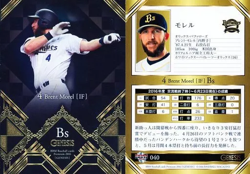 BBM / tarjeta regular / Orix Buffaloes / BBM2016 Génesis 040 [tarjeta regular] : Morel