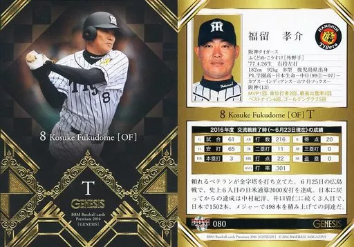 Nombre comercial en japonés: BBM/レギュラーカード/阪神タイガース/BBM2016 ジェネシス 080[レギュラーカード]:福留孝介