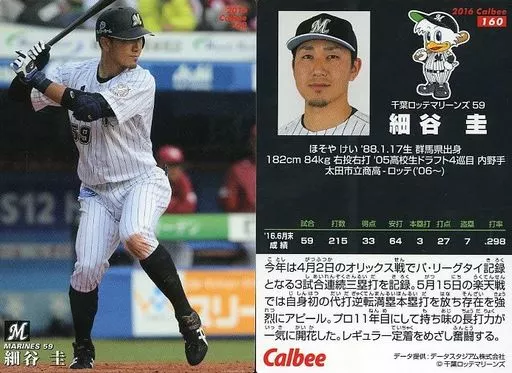 Nombre comercial en japonés: スポーツ/レギュラーカード/2016プロ野球チップス第3弾 160[レギュラーカード]:細谷圭