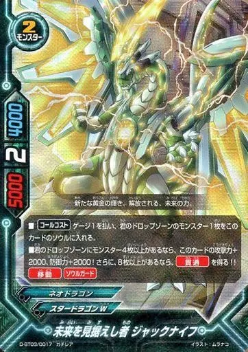 Nombre comercial en japonés: バディファイト/ガチレア/モンスター/スタードラゴンW/[BF-D-BT03]トリプルディー ブースターパック第3弾「滅ぼせ!大魔竜!!」 D-BT03/0017[ガチレア]:未来を見据えし者 ジャックナイフ