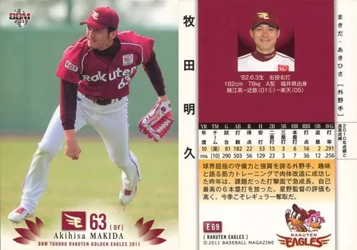 Nombre comercial en japonés: BBM/レギュラーカード/BBM2011 東北楽天ゴールデンイーグルス E69[レギュラーカード]:牧田明久