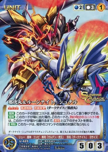 Nombre comercial en japonés: クルセイド/R/UNIT/青/サンライズクルセイド フェスティバルブースター U-425[R]:邪虎丸&ルーンナイト・シュテル
