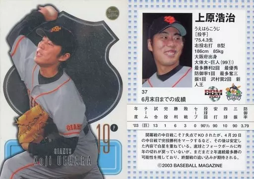 Nombre comercial en japonés: BBM/レギュラーカード/読売ジャイアンツ/BBM2003 Touch the game 37[レギュラーカード]:上原浩治