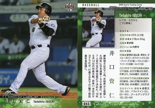 BBM / Tarjeta regular / Chiba Lotte Marines / BBM2016 MASTERPIECE 043 [tarjeta regular] : Sukehito Iguchi