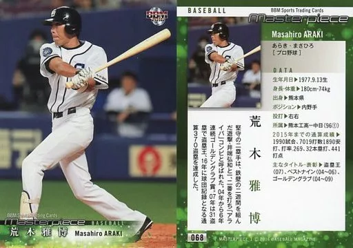 BBM / tarjeta regular / Chunichi Dragons / BBM2016 MASTERPIECE 068 [tarjeta regular] : Masahiro Araki