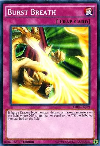 Nombre comercial en japonés: 遊戯王/N/罠/英語版/Legendary Decks II LDK2-ENJ39[N]:Burst Breath/バーストブレス