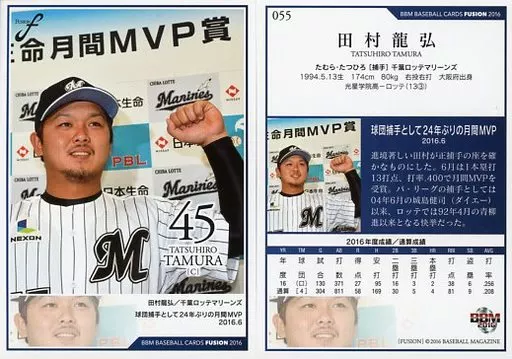 BBM / Regular card / Record Hall of Fame / Chiba Lotte Marines / BBM2016 FUSION 055 [tarjeta regular] : Tatsuhiro Tamura