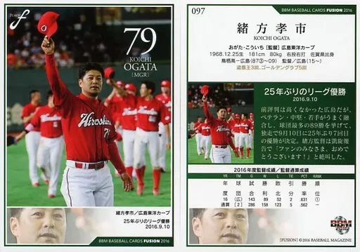 BBM / Regular Card / Record Hall of Fame / Hiroshima Toyo Carp / BBM2016 FUSION 097 [tarjeta regular] : Koichi Ogata