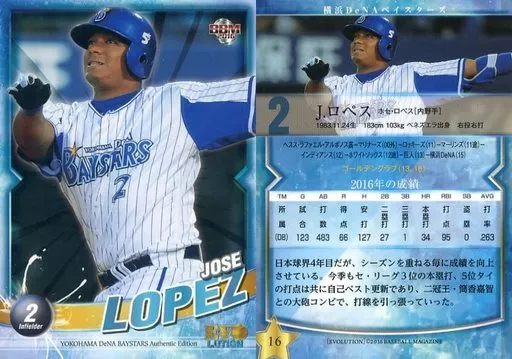 Nombre comercial en japonés: BBM/レギュラーカード/BBM2016 横浜DeNAベイスターズ EVOLUTION 16[レギュラーカード]:J.ロペス
