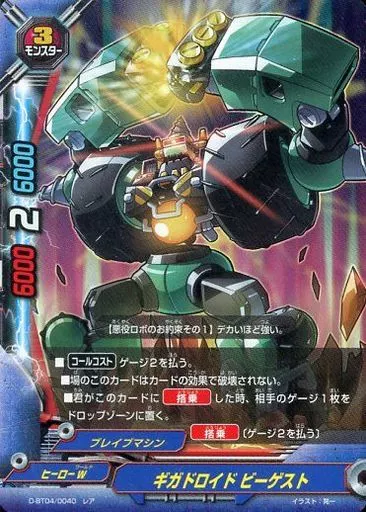 Nombre comercial en japonés: バディファイト/上/アイテム/ドラゴンW/[BF-D-BT04]トリプルディー ブースターパック第4弾「輝け!超太陽竜!!」 D-BT04/0040[レア]:ギガドロイド ビーゲスト(ガチレア仕様)