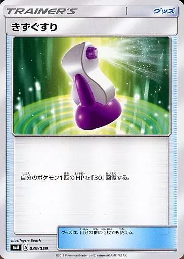 Nombre comercial en japonés: ポケモンカードゲーム/グッズ/サン&ムーン スターターセット草・炎・水 039/059:きずぐすり