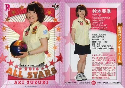 Nombre comercial en japonés: BBM/レギュラーカード/BBM2016 P★LEAGUE ALL STARS 07[レギュラーカード]:鈴木亜季