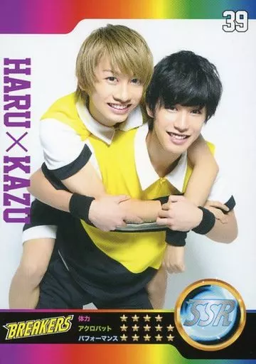 Nombre comercial en japonés: コレクションカード(男性)/Live Performance Stage「チア男子!!」トレーディングカード 39:本田礼生(坂東晴希)・古田一紀(橋本一馬)/SSR/Live Performance Stage「チア男子!!」トレーディングカード
