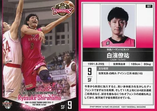 Nombre comercial en japonés: BBM/レギュラーカード/秋田ノーザンハピネッツ/BBM2017 BBM×B.LEAGUE 2016-17 FAST BREAK 1st Half 007[レギュラーカード]:白濱僚祐