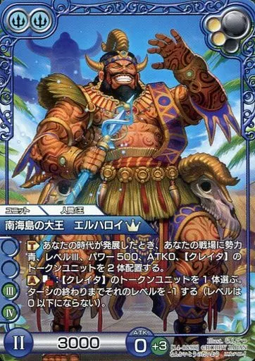 Nombre comercial en japonés: ラストクロニクル/R/ユニット/青/ブースターパック陽光編IV 14-089R[R]:南海島の大王 エルハロイ