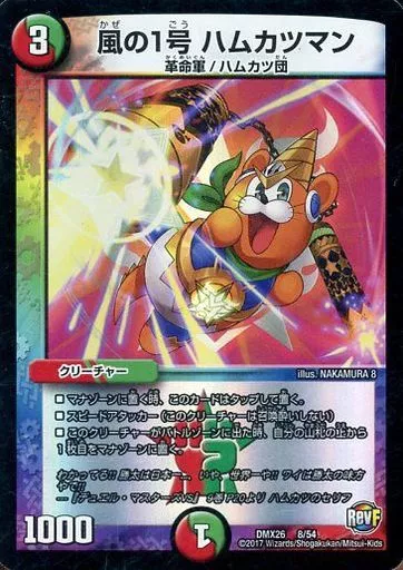 Nombre comercial en japonés: デュエルマスターズ/多色/[DMX-26]ファイナル・メモリアル・パック ~DS・Rev・RevF編~ 8/54:風の1号 ハムカツマン