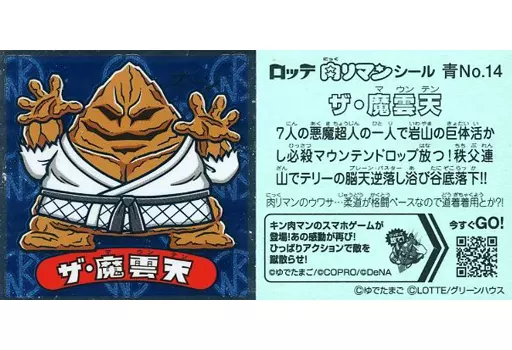 Nombre comercial en japonés: コレクションシール/ノーマルシール/肉リマンチョコ 青コーナー 青No.14[ノーマルシール]:ザ・魔雲天