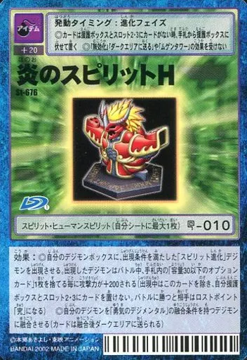 Nombre comercial en japonés: 旧デジモンカードゲーム/アイテムカード/デジタルモンスターカードゲーム スターターセットVer.7 ~超融合の闘士たち~ St-676:炎のスピリットH