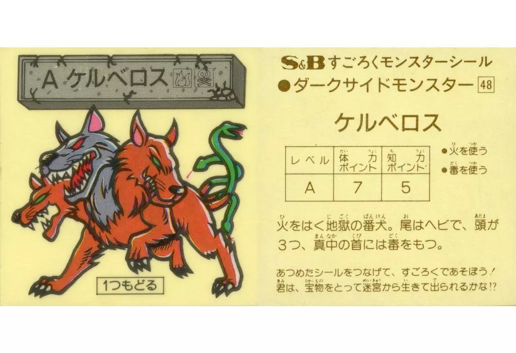 Nombre comercial en japonés: コレクションシール/魔空の迷宮 すごろくモンスター2弾 ダークサイドモンスター48:ケルベロス