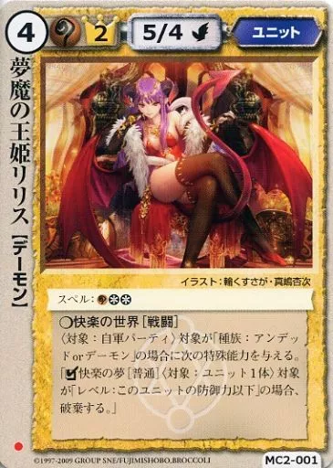 Nombre comercial en japonés: モンスターコレクション/基本/ユニット/夢幻の輪舞曲 MC2-001[基本]:夢魔の王姫リリス