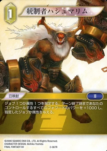 Nombre comercial en japonés: ファイナルファンタジーTCG/R/土/OpusII 2-087R[R]:統制者ハシュマリム