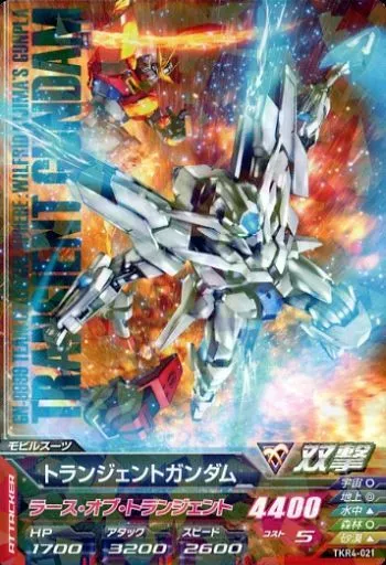 Nombre comercial en japonés: ガンダムトライエイジ/R/モビルスーツ/鉄華繚乱4弾 TKR4-021[R]:トランジェントガンダム