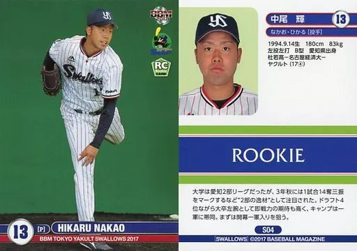 BBM / tarjeta regular / BBM2017 Tokyo Yakult Swallows S04 [tarjeta regular] : Hikaru Nakao