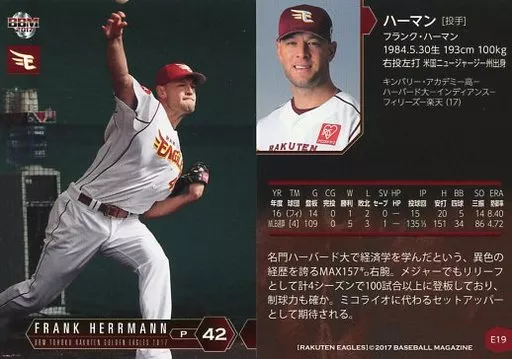 BBM / tarjeta regular / BBM2017 Tohoku Rakuten Golden Eagles E19 [tarjeta regular] : Herman