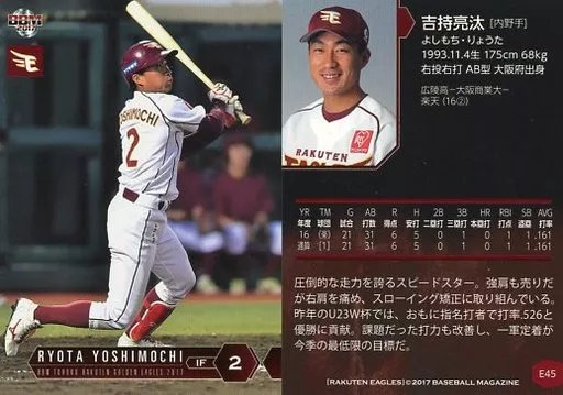 BBM / tarjeta regular / BBM2017 Tohoku Rakuten Golden Eagles E45 [tarjeta regular] : Ryōta 吉持