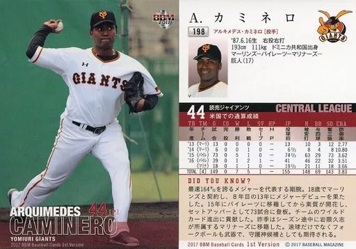 Nombre comercial en japonés: BBM/レギュラーカード/読売ジャイアンツ/BBM2017 ベースボールカード 1stバージョン 198[レギュラーカード]:A.カミネロ