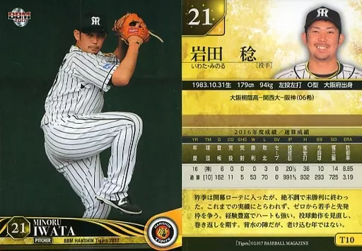 Nombre comercial en japonés: BBM/レギュラーカード/BBM2017 阪神タイガース T10[レギュラーカード]:岩田稔